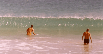 My brother Pete and my father Jack head into the waves at Natadola beach.