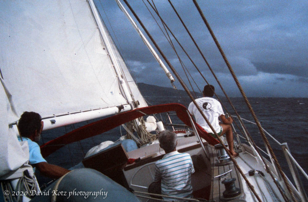 Jack Kotz sailing in Fiji 1989 – with Peter Kotz on the bow.