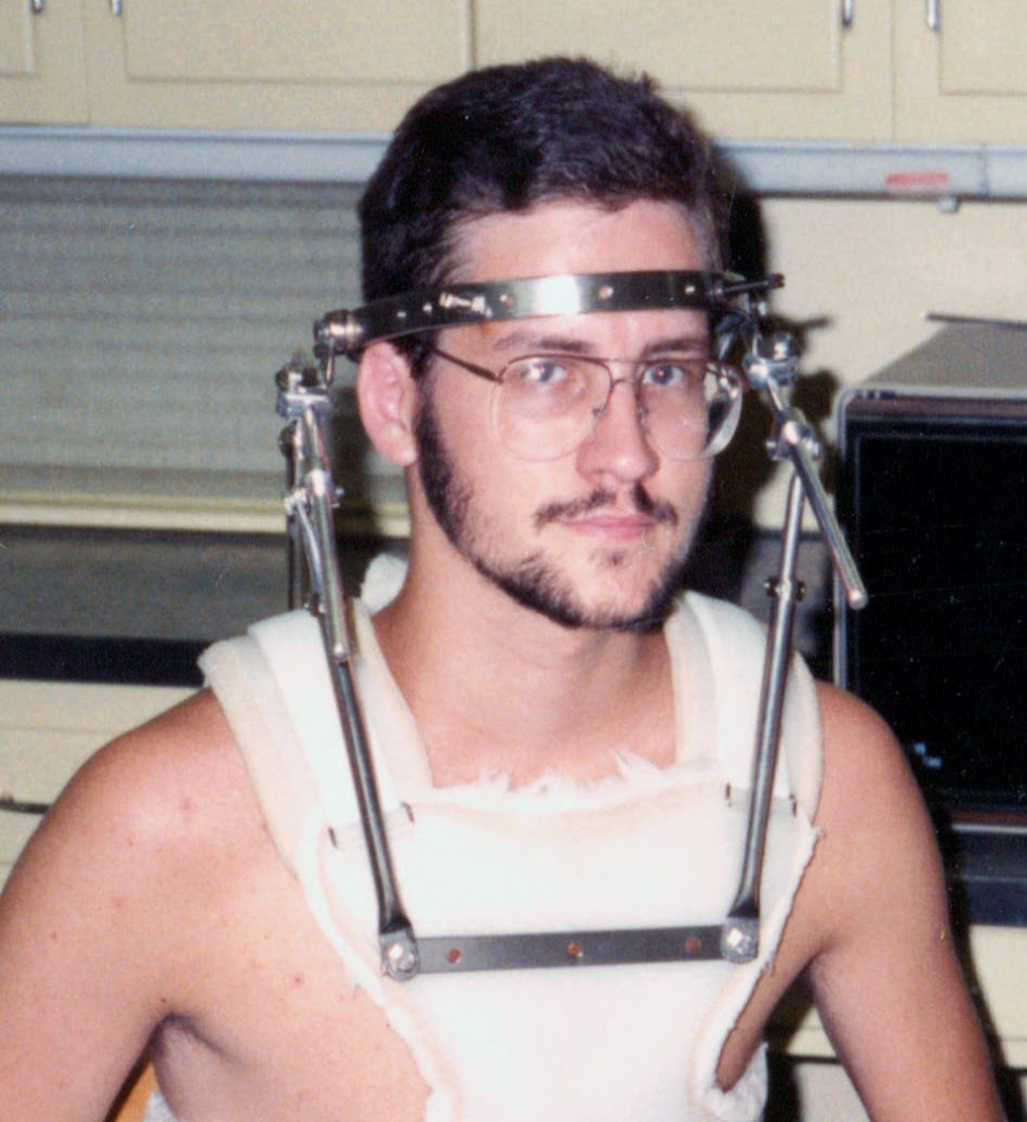 After Dave had been stabilized in his halo, Dr. Dillin operated on his neck on Friday, June 30. They wired the broken vertebra together with the ones above and below. Then, using bone from his hip, they grafted bone onto his spinal column to keep the three vertebrae together permanently. The operation was very successful, and by the following Tuesday Dave was up and walking and really beginning to feel better. For the first time in about 10 days we could begin to believe that our son was going to come out of this a whole person.