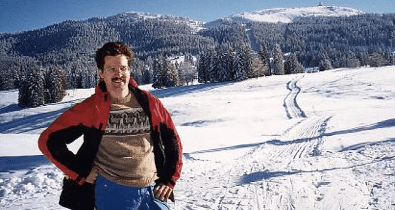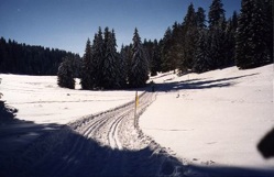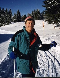 On December 8, 1998 I was near Geneva on some business, and passing through the town where Alex de Sherbinin ’84 lives and works these days, so I stopped in for a brief visit. Just hours after landing, complete with jet lag, he picked me up at the Nyon train station and whisked me up into the hills. Geneva and Nyon are low altitude, along Lac Leman, but the land rises rapidly up to a ridge known as the Jura, perhaps 3000 feet elevation. As we drove up a windy road, the snow became deeper, and the views more spectacular, back across the lake to the Alps and Mont Blanc. We stopped in the little town of Saint Cergue for a little picnic lunch and to wait for the shopkeeper to reopen so I could rent some XC skis. When she finally returned, the neighboring shopkeeper scolded her, in reference to us, “These are the seventh people to come into my shop to ask when you will reopen, won’t you please put up a sign saying when you plan to return.” Even in my limited French I caught the gist of her resultant muttering about how she has the right to close when she wants, if she wants to close, she closes, etc etc etc.
