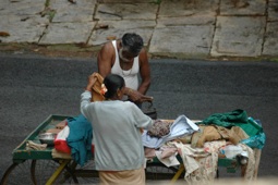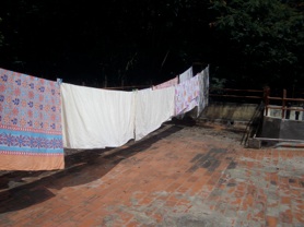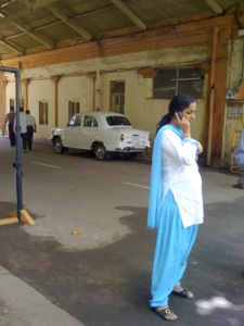 - I meet our Fulbright-appointed facilitator, who was able to come to the FRO this time. He suggests that we take an auto-rickshaw directly to the notary, even though she is not answering her phone. Perhaps by the time we arrive she will be there. This auto ride was fascinating, because we took numerous twists and turns through tiny alleys, attempting to find the right address. People’s wet laundry wiped the side mirrors of our auto – which is itself a very narrow vehicle, so that tells you how narrow were the alleys. Many times we asked passers-by or other drivers for directions. The great thing about these open-air autos is that it is a very social experience.