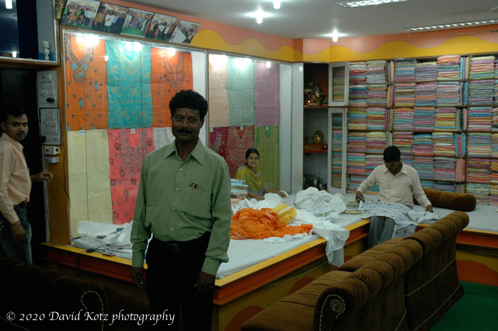 My driver urged me to visit a particular chikan shop, where they do exquisite needlework on shirts, blouses, saris, and the likes. He gave me the full treatment… please sit down sir, and sip this tea while I pull out several hundred shirts and saris to show you. I am not exaggerating… his workers would bring stacks of plastic-wrapped items, and he’d whip each out in turn, spread it in front of me, and convince me that every one was more beautiful than the prior. In the midst of this, all of a sudden a holy man opened a cabinet, pulled out candles and incense, and then blew (loudly!) on a seashell. This was the time for prayer, and several workers paused while he chanted a certain blessing. For me, the shirts kept coming.