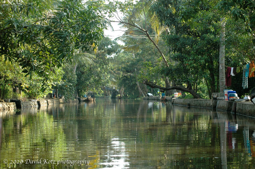 The backwaters are full of wildlife, but there are 500 houseboats toting tourists (we saw as many as 20-30 at any one time) so the wildlife was hard to spot. The most fascinating part is watching the people who live along the canals. We took a brief hourlong tour by canoe, allowing us to explore some of the shady narrow canals. It’s a bit like bicycling down the back lane of a village, with sidewalks on either side and a variety of homes – everything from simple shacks to middle-class homes sporting a satellite dish. It is quiet, but there is lots of activity: schoolchildren skipping homeward, women washing clothes, men in dhotis bathing, a grandfather paddling children home.