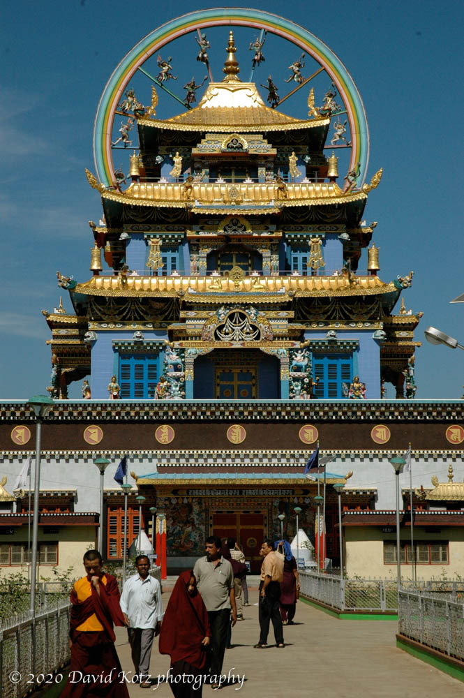 We then visited the nearby Tibetan village of Bylakuppe. Yes, odd as it seems, there is a substantial Tibetan population nearby. When the Dalai Lama fled Tibet, 50 years ago, some Indian states granted them land; Dharamsala, in the far north, in the foothills of the Himalaya, is the site of the government in exile; Bylakuppe is quiet village in Coorg. The Namdroling Monastery and “Golden temple” were stunningly beautiful.