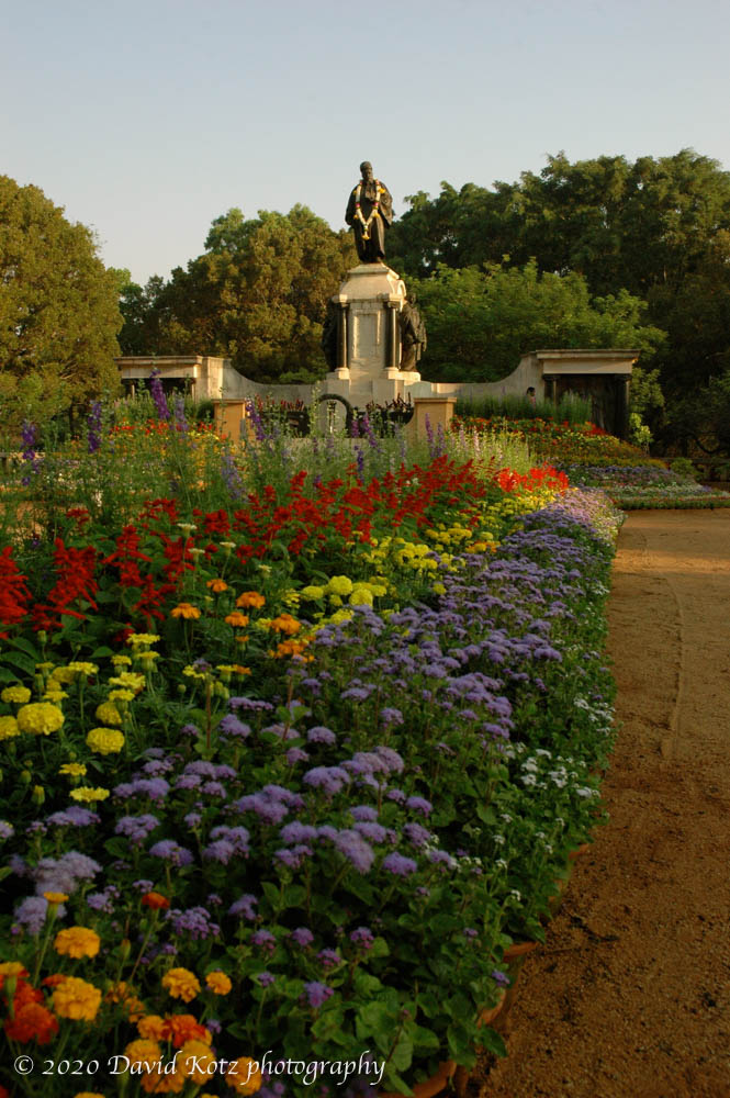 The Indian Institute of Science (IISc), my host (and our home) during this sabbatical, was founded in 1909 by J. N. Tata. Every year, on the occasion of his birthday, the Institute celebrates “Founder’s Day”. This year, the 100th anniversary of IISc, is of particular importance. We went to watch an early-morning ceremony at the main campus building, its courtyard decorated with several thousand flowering potted plants. Tata’s statue had earlier been decorated with a flower garland, and we arrived just in time to see various department heads delivering floral wreaths to the foot of the statue. Read on.