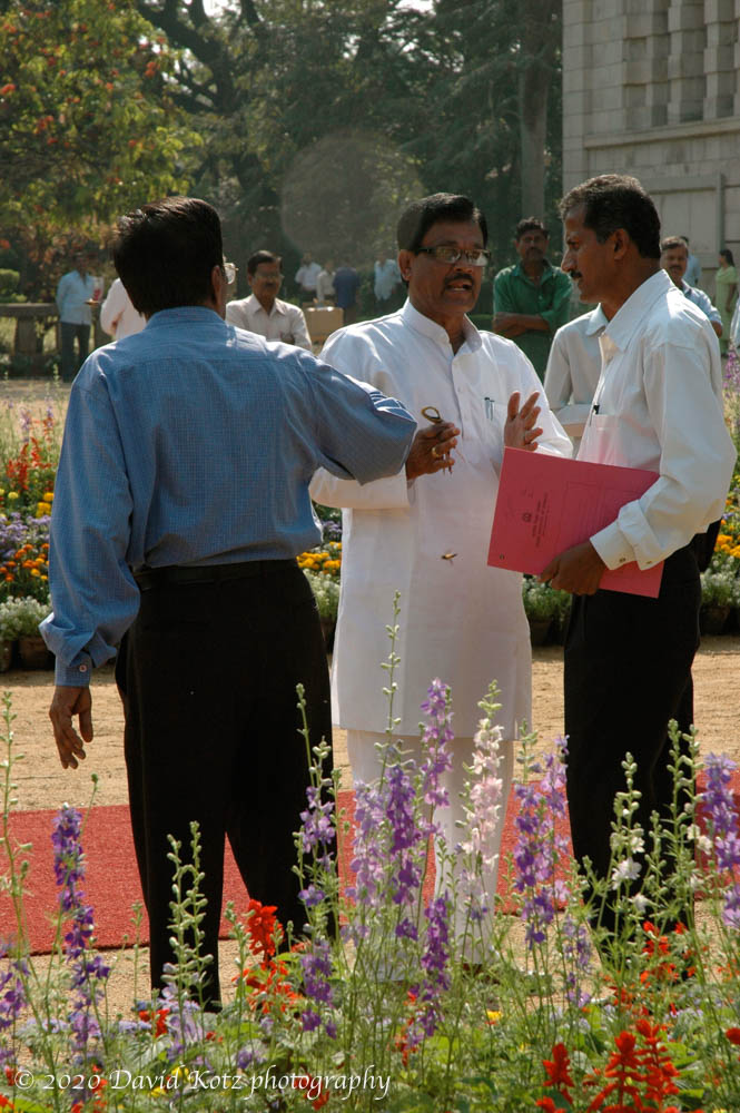 Then an argument broke out. Two men were shouting loudly; another group walked off to quickly fetch back the Director of the Institute (a professor who serves as, effectively, the president of the university). The men were yelling at him, raising their fists, quite animatedly. I could not understand what they were saying – I think it was Kannada, not Hindi – but the Director was clearly not happy to be there, and tried to appease them in some way. We later came to understand, through the explanation of a helpful student, that apparently some departments had not been called forward to receive a wreath for delivery to the statue; I suspect that they were deliberately overlooked due to some politics, because there were clearly several wreaths left on the table. Anyway, a man made an announcement apologizing for the oversight and the aggrieved department heads delivered their wreaths.