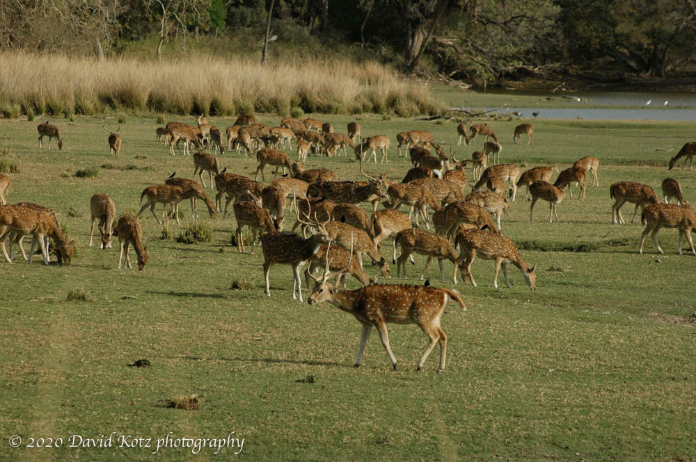 In the dry season – it hasn’t rained here in 3-4 months – so there are few leaves and it is easier to see wildlife. On our second and third trips into the park we were in “zone 3”, which has several lakes and ponds. As a result we saw herds of deer and flocks of birds, all totally nonchalant about our presence.
