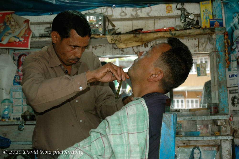 We ended our trek in the village of Rimbick, staying in a hotel there overnight. I saw Wangchuck getting a shave at a tiny stall in the main square (below), and decided to give a try. What an experience! He lathered me up with a brush and then inserted a (thankfully new) razor into his handle. After shaving me twice – those straight razors always make me nervous – he wet a large clear rock and smoothed it over my face. Well, it looked like a rock but I expect it was some sort of soap or disinfectant. Then he dotted my face with pink paste and proceeded with a vigorous face massage. I can safely say this is my first eyebrow massage. The paste left my face tingling while he massaged my scalp and pulled at my hair. He massaged my shoulders, arms, hands, and even fingers, before putting my hand behind my head and then reaching around me to crack my back this way then that. I protested when he went to crack my neck in the same way (cross-reference “broken neck in Fiji” at this point). He combed my hair and wiped my face. Total cost: 50 rupees (a dollar).