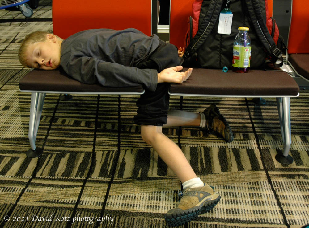After an overnight flight we stopped for three hours in the fabulous Singapore airport. The boys didn’t sleep on the plane, they were so busy playing games on the in-seat entertainment system. Still, I’m always amazed at how kids can sleep pretty much anywhere, like Andy in the Singapore airport:
