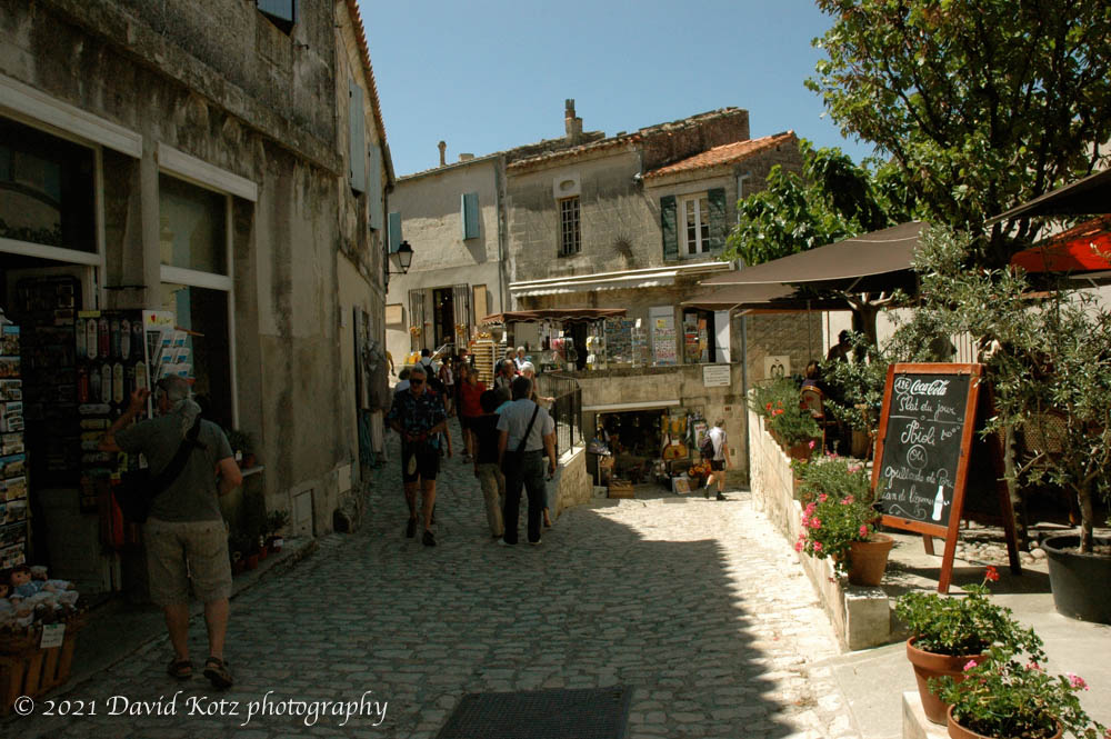 I arrived on Friday after zipping across the French countryside in the TGV train. In Avignon I visited the obligatory sights, including the Palais des Papes (home of the Pope for several generations) and le Pont d’Avignon, which now only crosses halfway across the Rhone, and walked the streets of the old city, still surrounded by thousand-year-old ramparts. But most fun was a day-long excursion tour into the countryside, visiting the Roman-era amphitheater in Arles and theater in Orange, each 2,000 years old and still functional; the ancient hilltop village of Les Baux (arguably the most beautiful village in France), and ending with a wine tasting in the tiny village of Chateauneuf du Pape (in my opinion one of the very best wine regions in France). It was a crystal-clear blue-sky sunny day, with the street cafes spilling over with tourists and the flowers of late spring blooming along the roadsides.