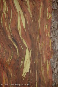 At right is a close-up of the bark of a madrona tree, which sheds its bark annually.