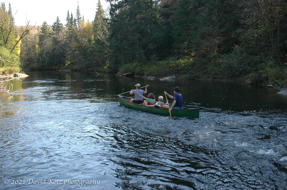 In the small-world department: we stopped for a breather at Sid’s Ledge, resting on the rocky shoreline while the Dead Diamond bubbled over a small drop. Along came a family in a canoe. “Hello, Dave!” came a shout from the bow. In the canoe was an old Dartmouth friend (class of ’88) and his wife and two kids. I snapped a few photos as they passed by, expertly navigating the rapids. The cool thing about The Grant is that it feels like the middle of nowhere but you run into people you know.
