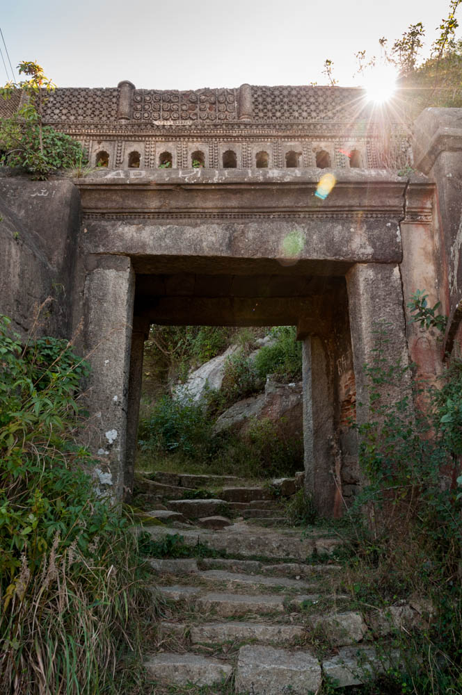 Sunday I finally made a visit to the Nandi Hills outside of Bangalore. I’d heard about these monolithic granite mountains years earlier, but had never managed to visit. They rise sharply from the otherwise-flat plains around Bangalore (at about 3000′ elevation) into the clouds at 4850′. I was fortunate to get a tip from a local friend about a little-used trail up the backside of the hill, allowing me to hike up instead of driving up the hairpin turns and dodging crazy motorcyclists. This trail is impressively maintained, and consists primarily of hand-hewn and hand-laid granite steps (each step being a solid slab of granite about 6 feet long by 2 feet wide by 6 inches high) leading steeply upward for several kilometers. This hill has centuries of history, and this trail takes one past several old structures, through the fortress walls, and past a Hindu temple before reaching the top. The top is laced with gardens and trails, many outlooks, and elegant homes dating from the British and pre-British rulers of the area. It being Sunday, there were many happy families strolling about and picnicking in the sunshine. Quite a contrast to my previous climb of a 4800′ mountain, the weekend before!