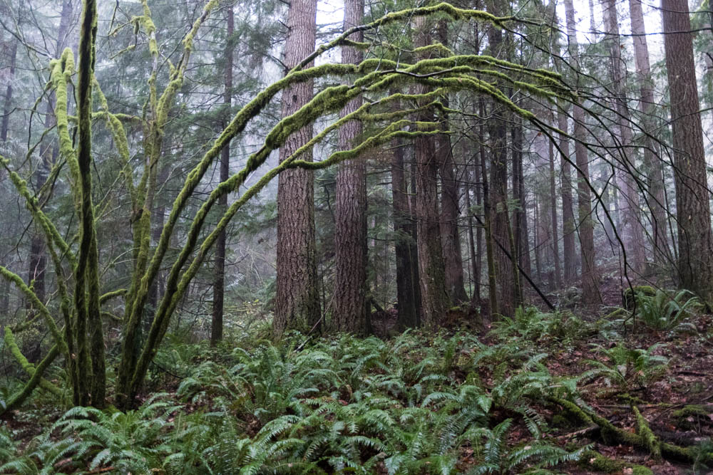 I left Seattle before sunrise, drove through a light drizzle (which, I gather, is the norm for Seattle) and reached the trailhead around 8am. With 3,100′ of gain in four miles, this is no little walk in the woods – but it’s actually comparable to my benchmark, the Glencliff trail on Mount Moosilauke. In fact, Mount Si barely tops 4,000′, shorter than Moosilauke.