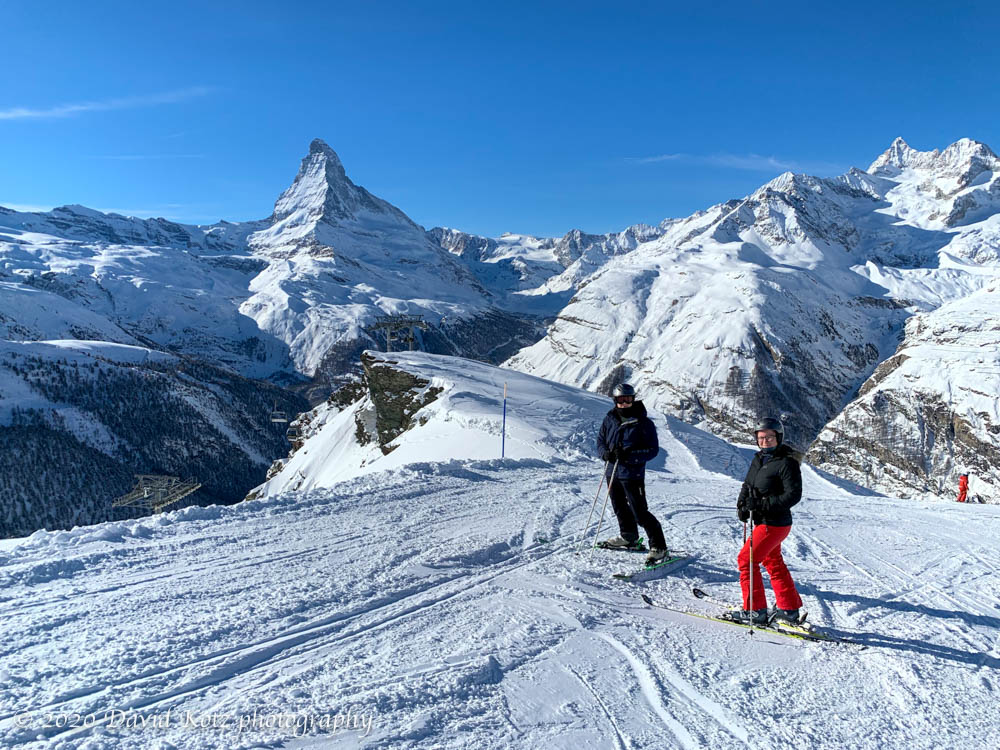 Andy and Mara skiing at Zermatt, in sight of the Matterhorn.