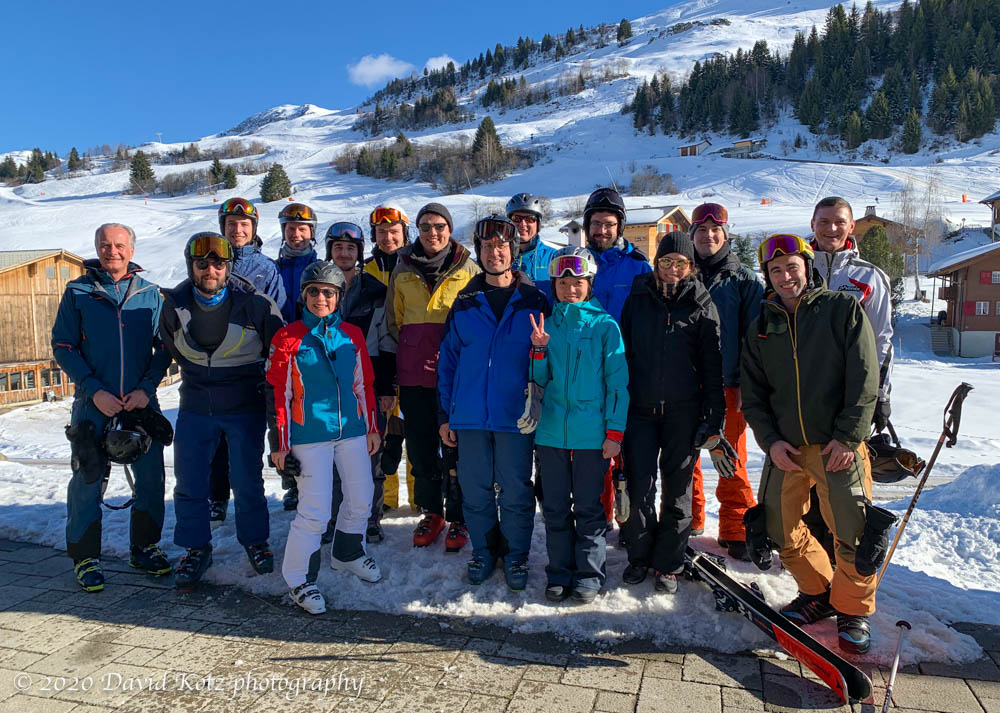 Group photo, ETH-St.Gallen lab ski day at Obersaxen, Switzerland.