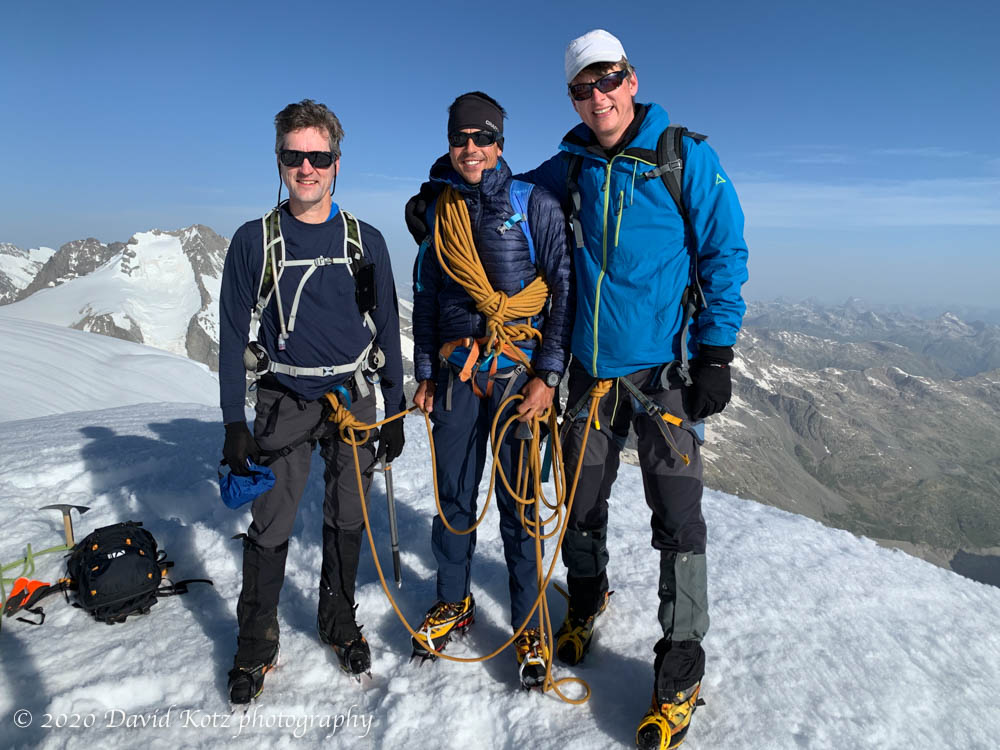 I grew up hiking in the Adirondack mountains of New York, and later the White Mountains of New Hampshire – places that are still near and dear to my heart – but ever since I was a young boy, leafing through pictorial mountaineering books from legendary climbers like Chris Bonington and Reinhold Messner, I’ve dreamed of ‘Real Mountains’ capped with snow and glacier. Yesterday, I finally had my chance and summited Piz Palü (3900m, 12,811′). Although relatively simple on the grand scale of mountaineering, it was nonetheless the most challenging mountain I’ve experienced in my 50 years of hiking. Read on and definitely do not miss the gallery – we were blessed with outstanding weather and snow conditions.