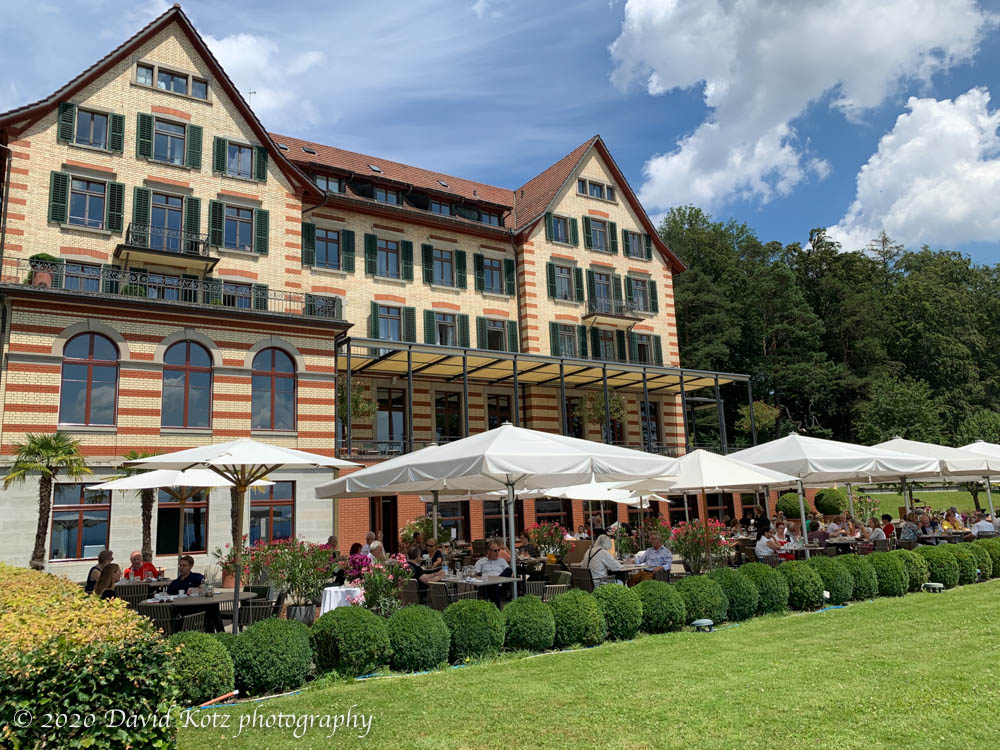Later, after some errands, I made my final climb up my usual morning route to Zürichberg, extending it a bit to reach the (wooded) summit. From there I followed gravel paths down to the 120-year-old Zürichberg Hotel, which I had passed many, many times without stopping.