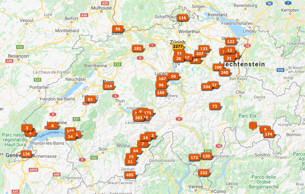 In a way, I’ve just begun to scratch the surface. Although you can see in the map below that I visited (and photographed) many locations around the country, the Swiss countryside changes over every ridgeline, from one valley to the next. Even within Zürich, my wanderings were focused almost entirely within the Altstadt (old town) and on the slope of Zürichberg above our flat, that is, within walking distance. And the coronavirus cut short many of my aspirations to visit more of its museums and other cultural activities. The good news: there’s lots to explore on my next visit! (Assuming I can ever return; the EU and Schengen region are not allowing US visitors.)