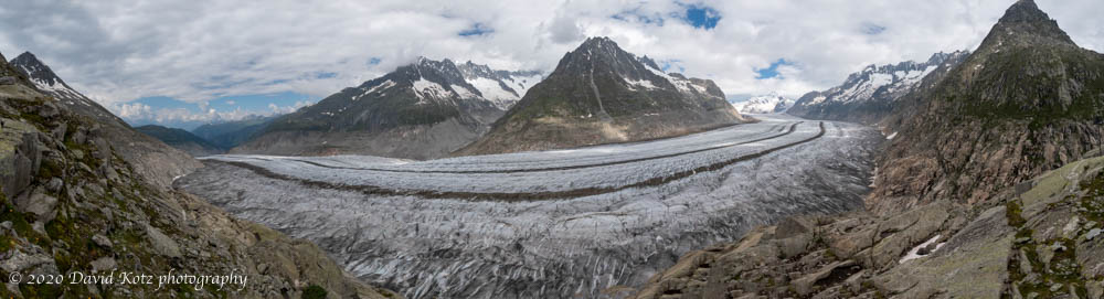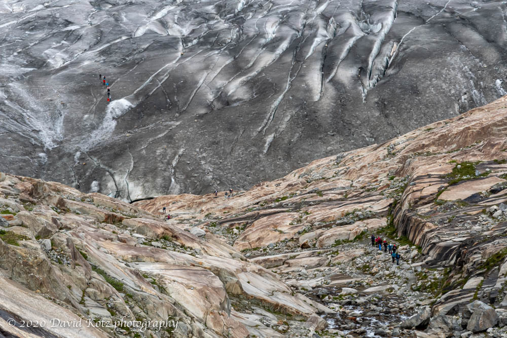 Aletsch glacier – look closely and see people walking off the glacier and up the rocks toward us.