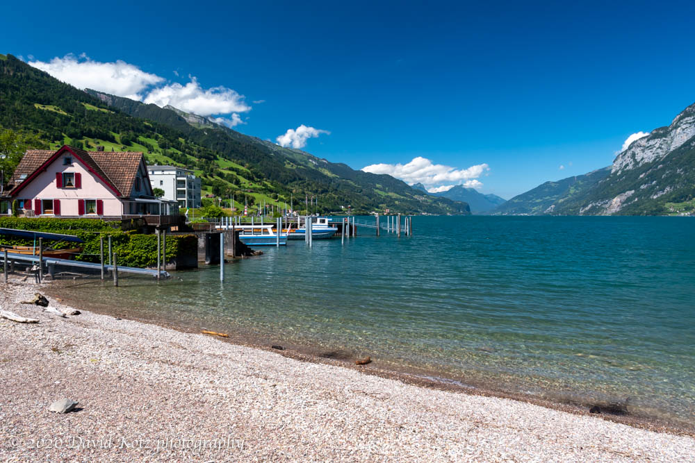 Though it was mid-week, other walkers were starting to arrive and the parking lot was full by the time I reached the base and ended my hike at about 10:30am. After the gondola ride down, I had 10 minutes before the next train, so I walked the short path to the lakeshore. Walensee is beautiful from there as well!