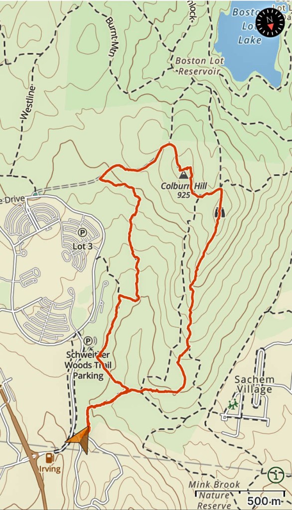 Today I took advantage of a gap in my Zoom schedule to visit a trail network I’d never explored before – between the huge complex of Dartmouth Hitchcock Medical Center and the graduate-student housing over at Sachem Village. This big green spot fills the center of the triangle formed by the towns of Hanover, Lebanon, and West Lebanon. There’s an amazing variety of terrain, and a thorough network of trails used by walkers and mountain bikers.