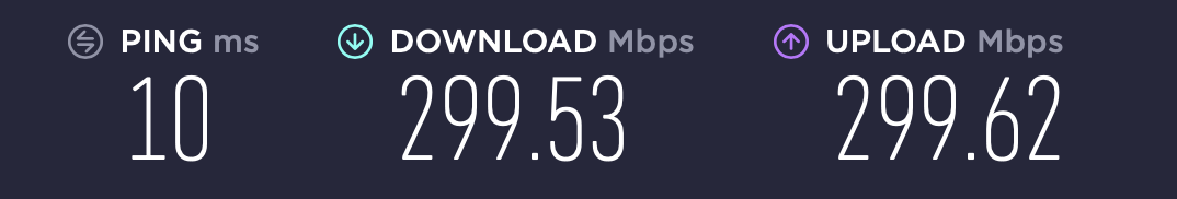 Shortly after he left, I ran a speedtest and was delighted to see, even over Wi-Fi, an impressive 300 Mbps up and down. (I could have paid for more.)