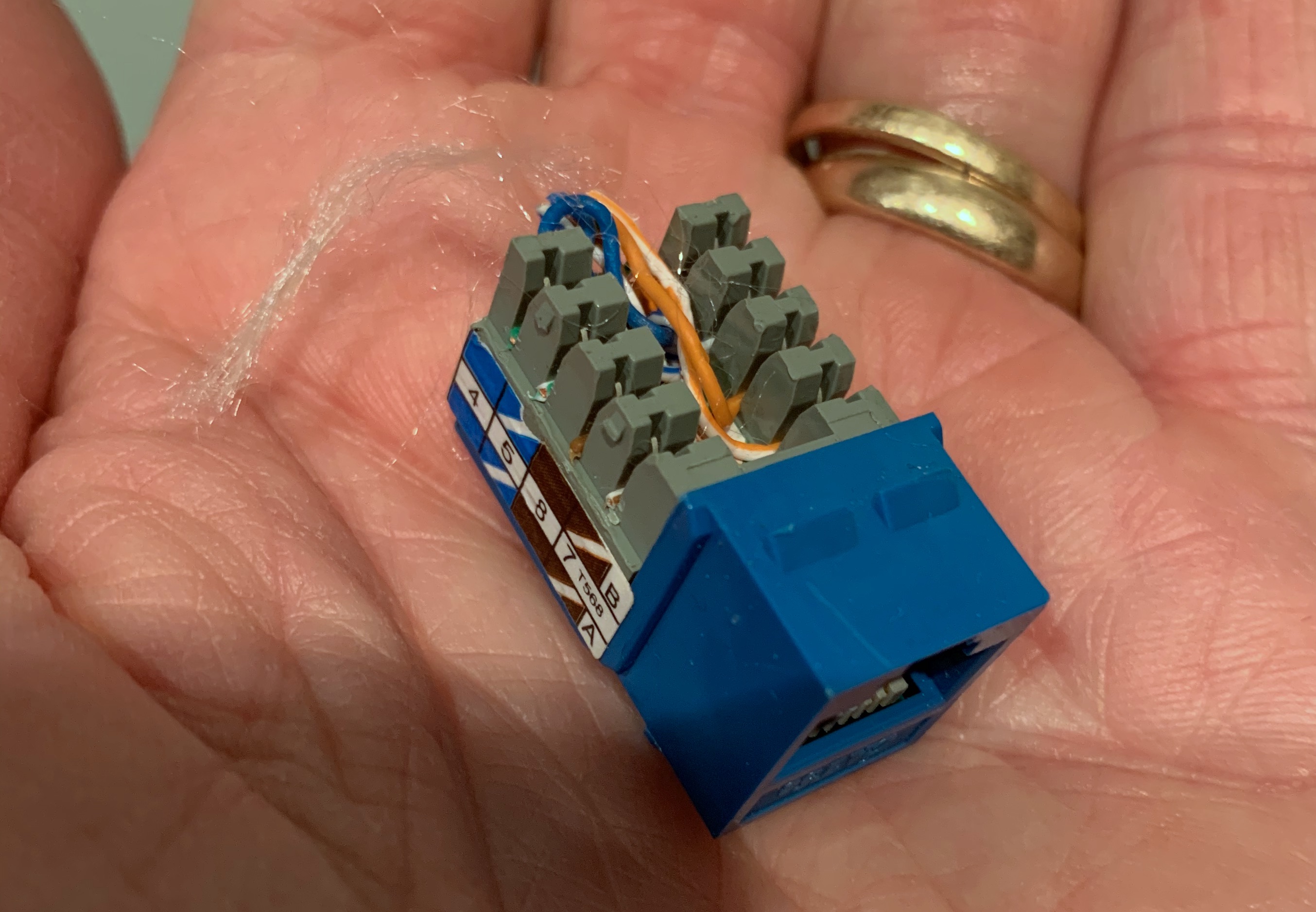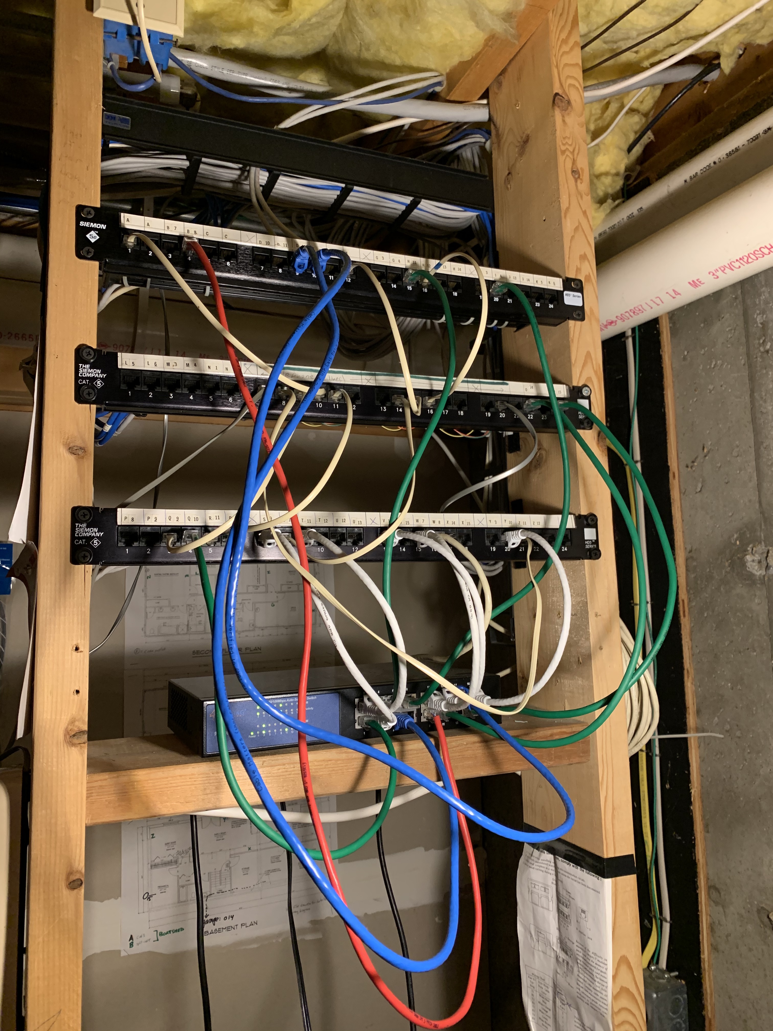 I punched-down the cable on my switch panel – one of the few remaining ports on an extensive house-wide network. (At this point, some of you will wonder why I installed a 72-port switch panel and nearly as many CatV cable runs throughout the house. When we built the house, Wi-Fi did not exist yet; I was actually installing LocalTalk as well as Ethernet and telephone.)