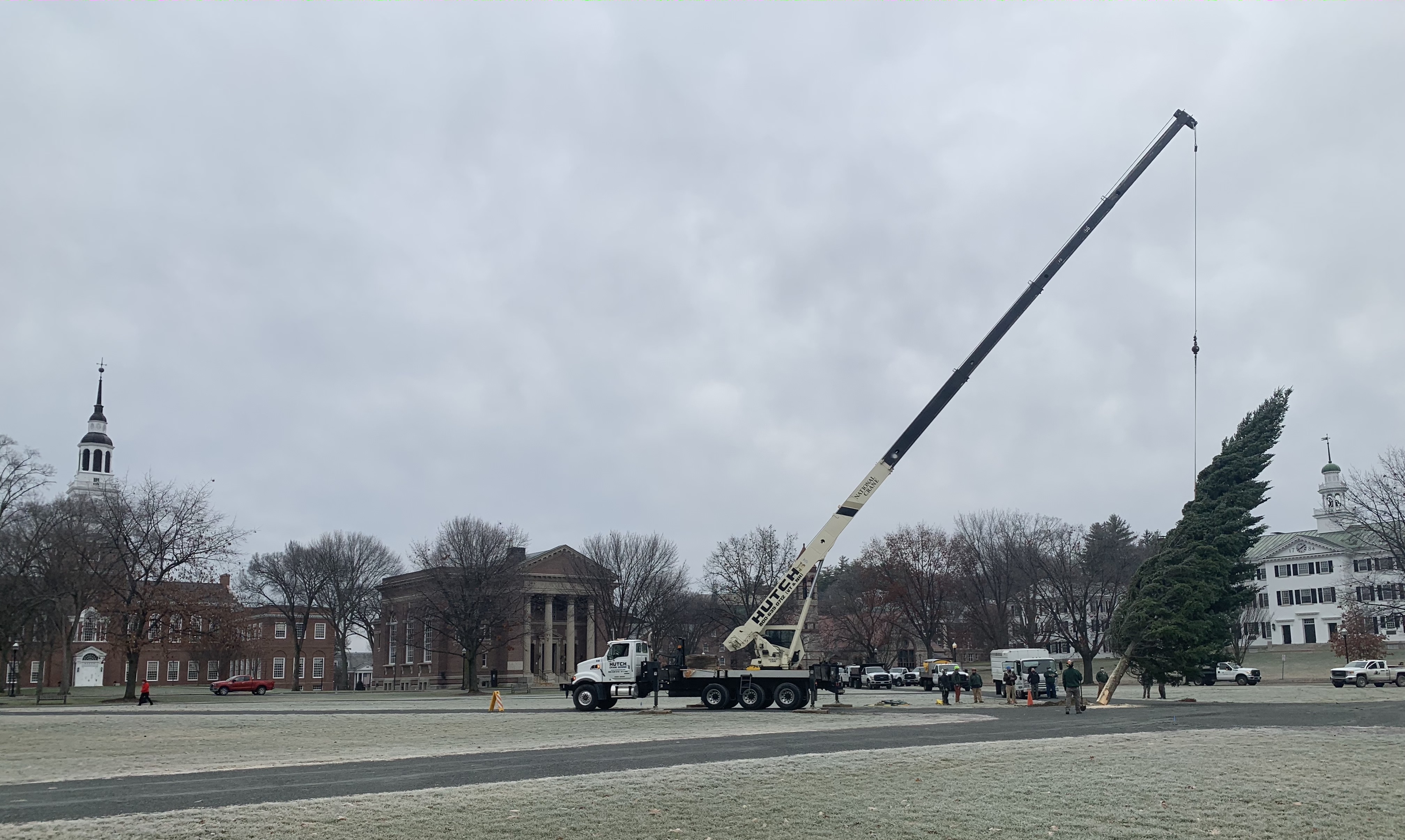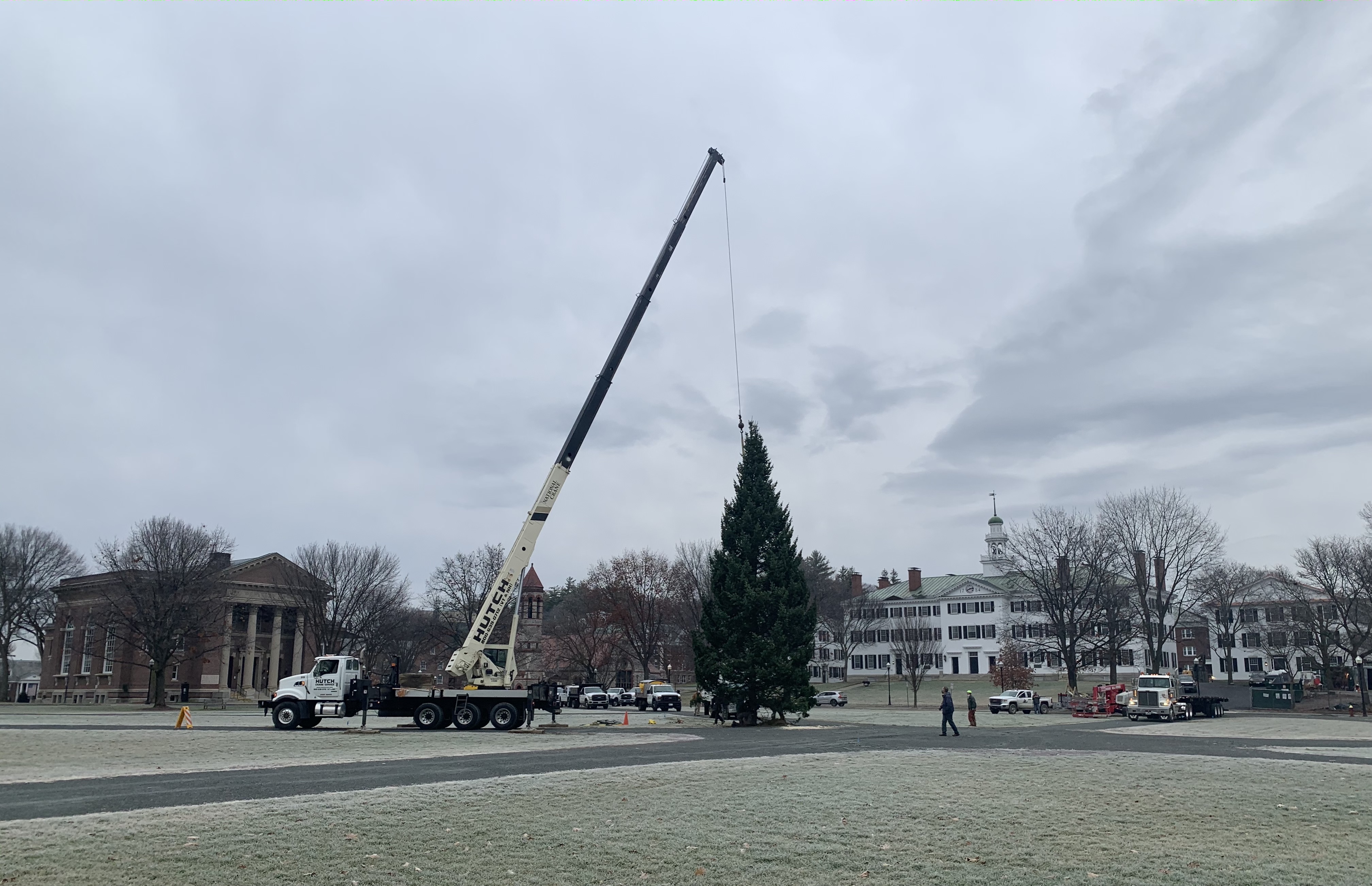 I happened to be walking along the Green in Hanover at the moment when Dartmouth was raising its annual Christmas tree. This year’s tree was selected from a tree farm in Wallingford, VT. Soon it will be decorated with lights and adding cheer to this quiet campus!