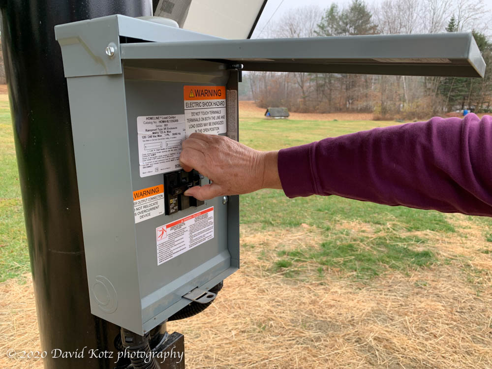 Yesterday, the local power company finally arrived to swap out our electric meter – replacing it with a meter that can count backward(!) as we power the grid from our panels. With the equipment now all installed, we were finally able to flip the switch and enable the tracker.