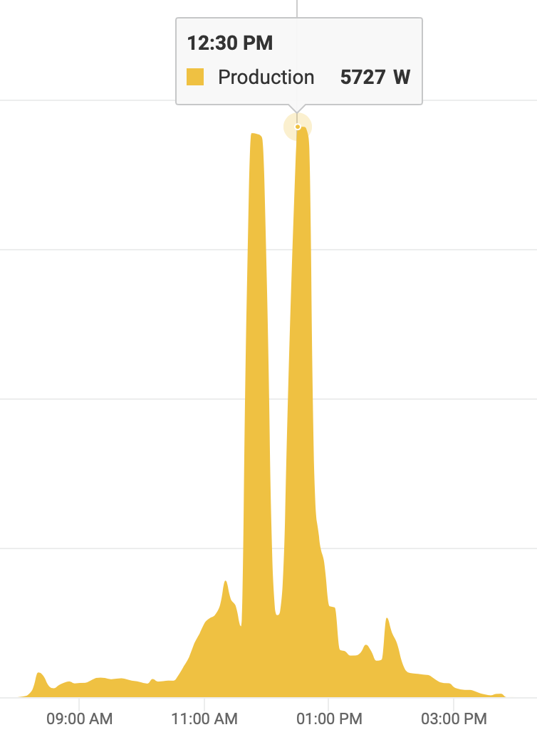 As you can see, our first full-day of operation was not particularly productive; nonetheless, we still managed to produce 6.86kWh. Although my Tesla battery holds 75 kWh, I expect it will be a rare day when I need to top it up with more than a dozen kWh.