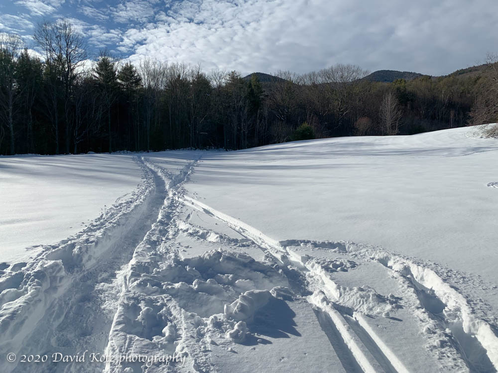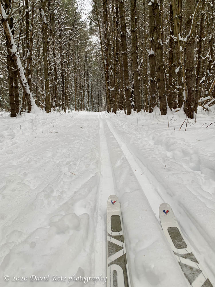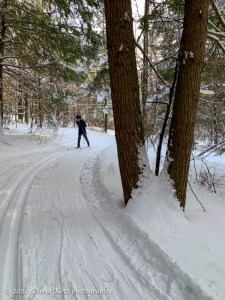 I’m especially grateful to Kevin and the crew who maintain the Stone House Farm trails in downtown Lyme (where I skied today), and to Bob and the extensive network out at the Greens (where Andy skied today).