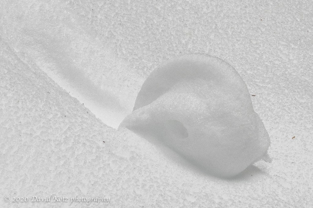 Today, I was out for a walk on a neighborhood road along a steep hillside, and came across an old snow roller. In this photo I’ve increased the contrast and texture to help see it a bit better against the snowy background.