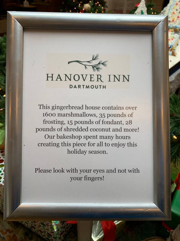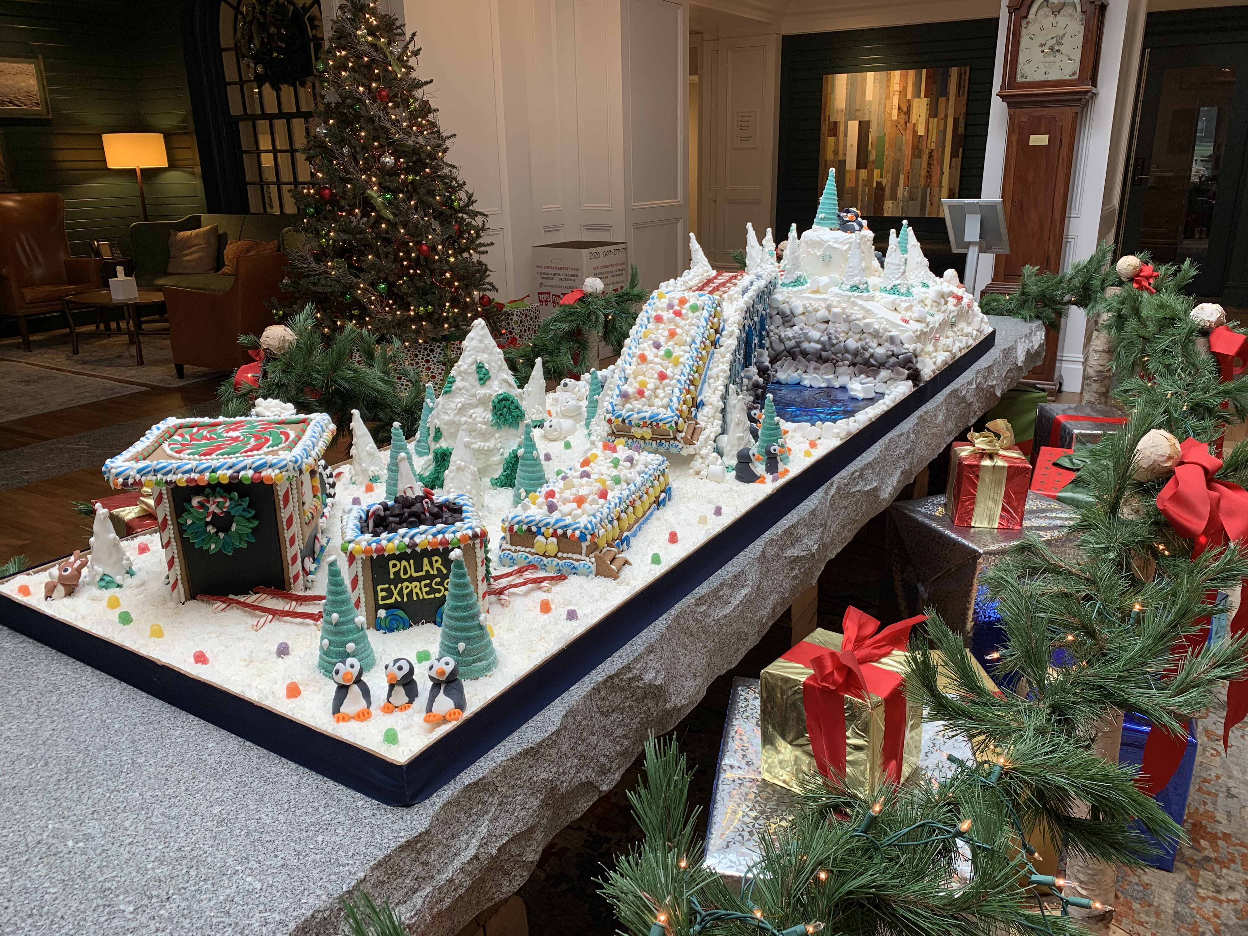 Every year, the creative chefs at Dartmouth’s Hanover Inn painstakingly construct a massive gingerbread-and-fondant creation, each year on a different theme. It’s always a marvelous sight, on display in their lobby throughout December. This year, the theme is The Polar Express.