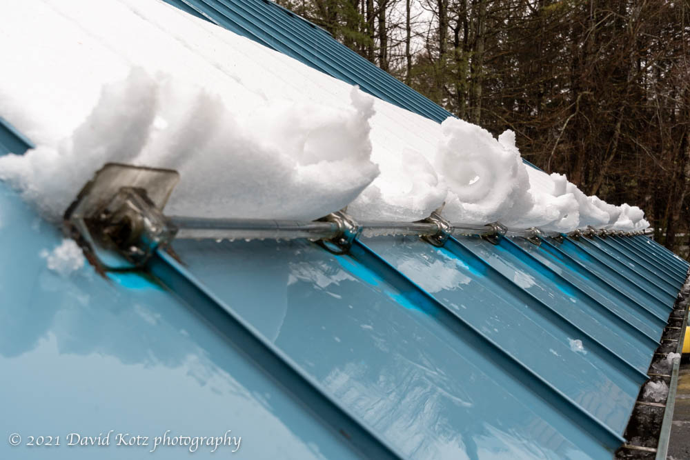 I know some of my readers are not from snowy climates, so let me explain. On traditional roofs (asphalt shingles), it’s important for snow not to accumulate, then melt and re-freeze. The snow will not slide off rough asphalt shingles; indeed, it can bond to the shingle as a thick layer of ice. These “ice dams” can cause future rainwater (or meltwater) to back-up and seep into the roof and inside the home. I used to spend a lot of time raking the snow off the edges of the roof, to prevent this expensive damage. So, about ten years ago we replaced our roof with a standing-seam metal roof, and I no longer need to rake the roof. The snow now slides off! 🙂