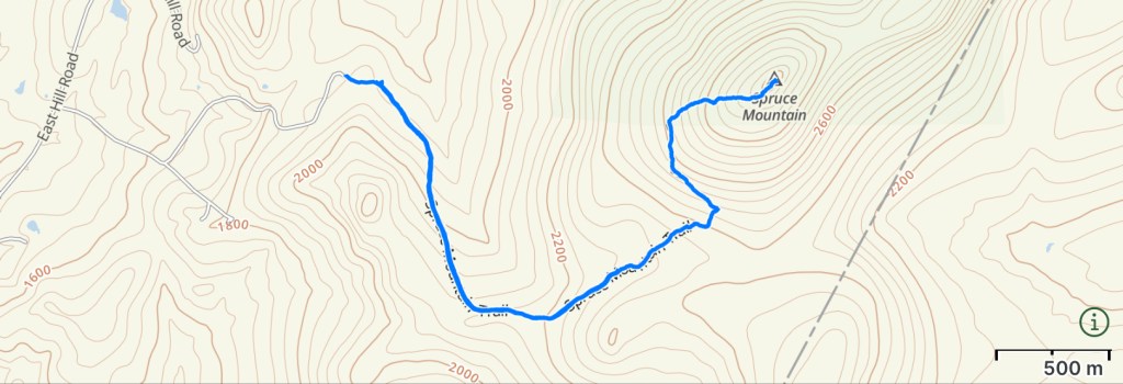 Another Thursday, another hike up a Vermont mountain in beautiful snow conditions. Today, Kathy and I climbed Spruce Mountain in eastern Vermont, selected because we had limited time (afternoon) and it was reasonably short and reasonably close. Read on…