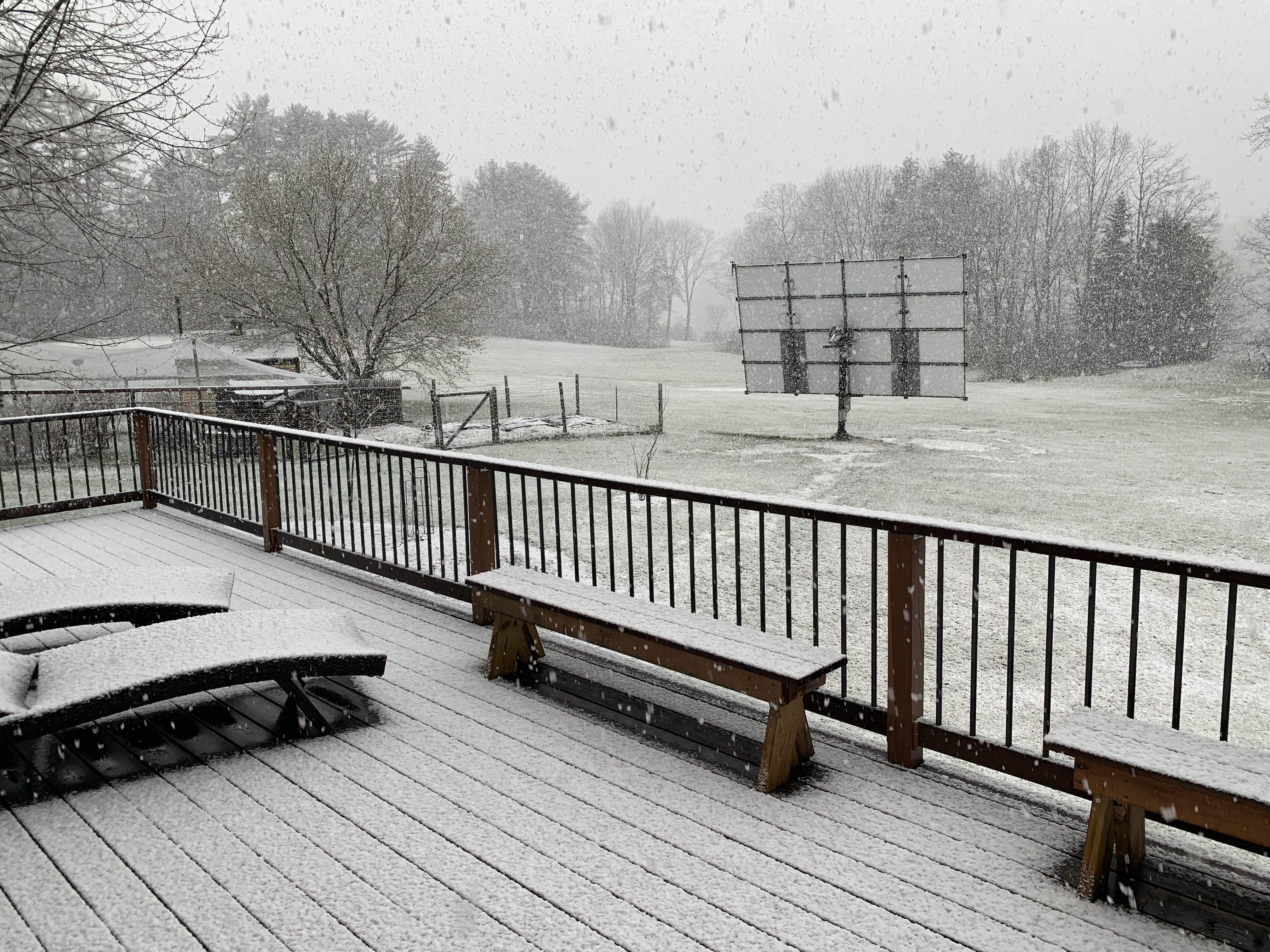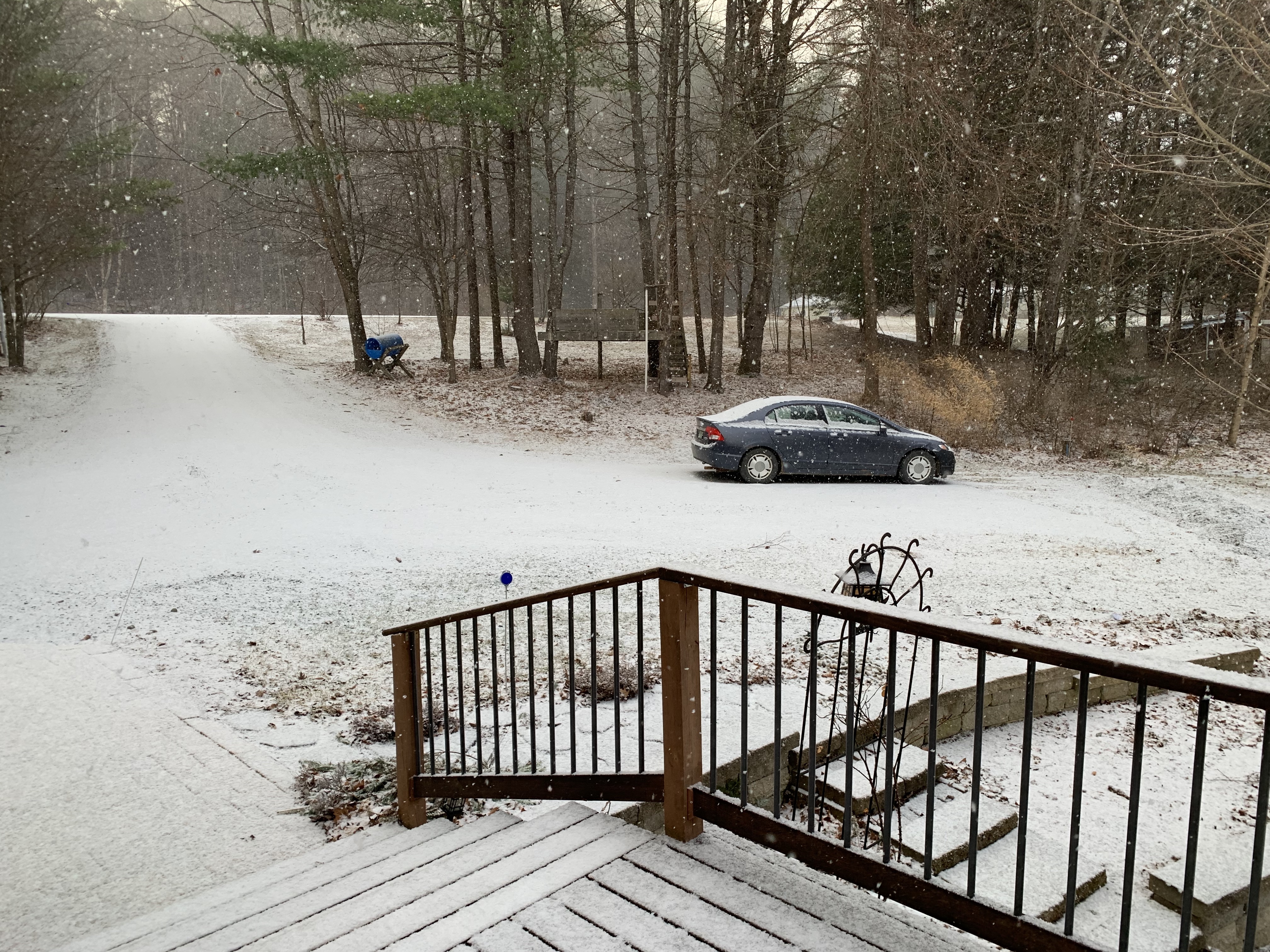 Every year, as the snow melts, the birds return, and we get a few warm days, people who are new to New England think winter is over. As some old-timers recently told me, with a knowing look, don’t be fooled by mother nature. Spring may have decided to arrive, sure; but winter usually hasn’t quite yet agreed. April is a time of surprises – it can be 70º one day and then snow six inches the next. So it was no particular surprise to me that yesterday, April Fool’s day, it snowed several times. Just briefly. At the end of the day, though, as it became colder, a bit of snow decided to stick. Now, at 7am, it’s snowing hard!