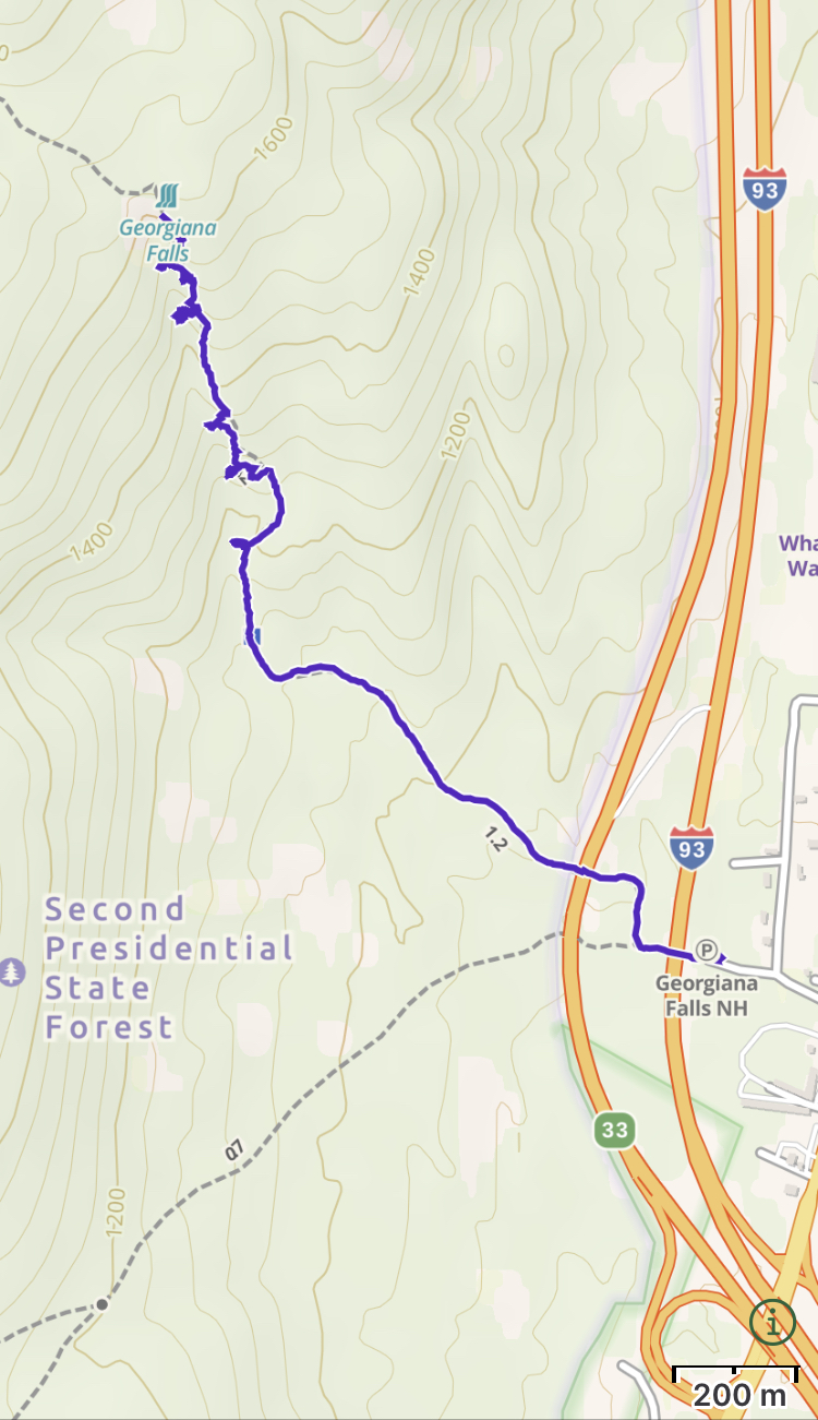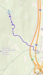 Months ago I planned to do some hiking in Franconia Notch with an old friend. When the day arrived, however, it was gray and drizzly, with all the summits deeply ensconced in clouds. So we avoided the trails to the high peaks and chose instead to hike up to one of the area’s hidden gems, Georgiana Falls.