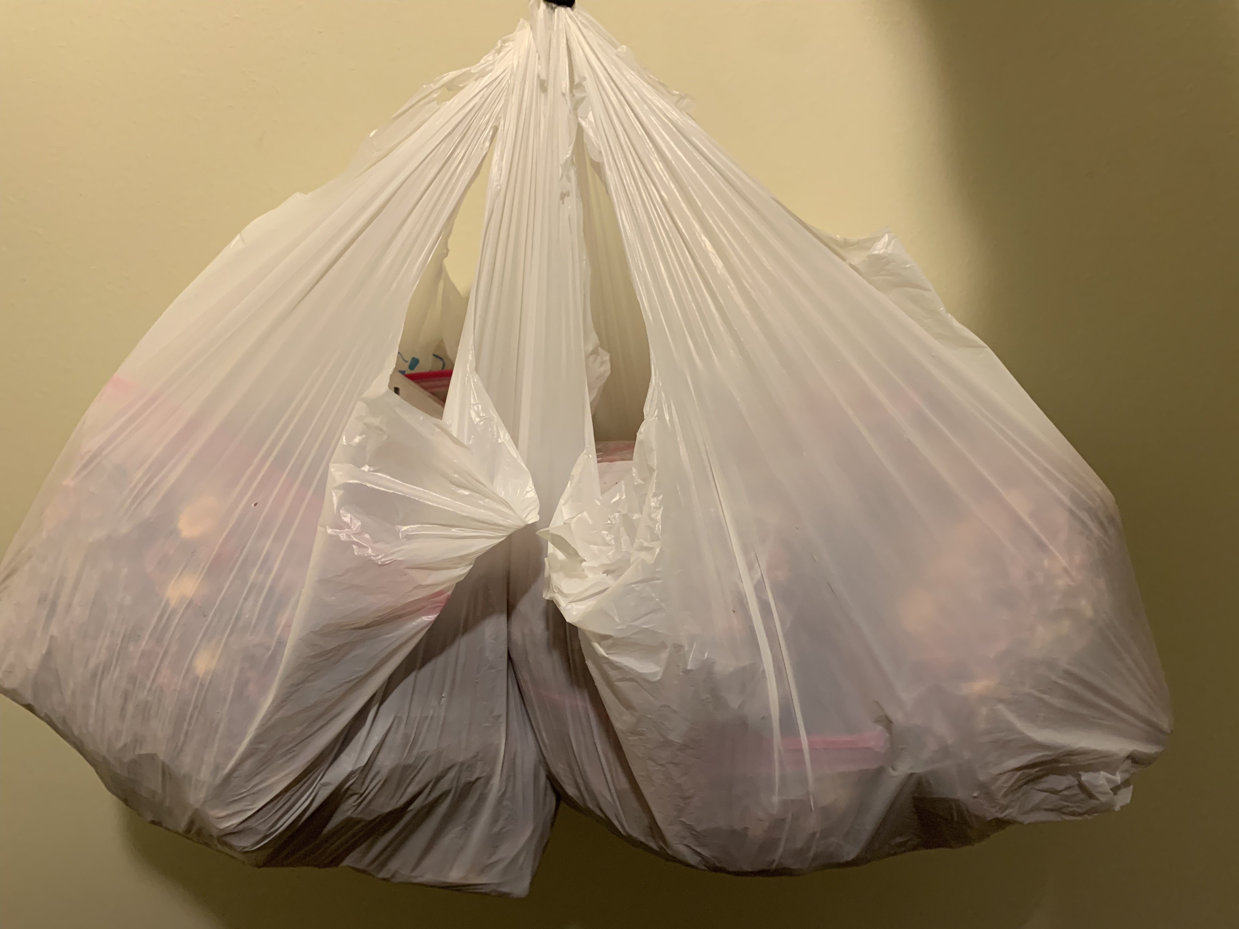 Ten pounds is 15 very full quart-sized ziplock bags; two full grocery bags!