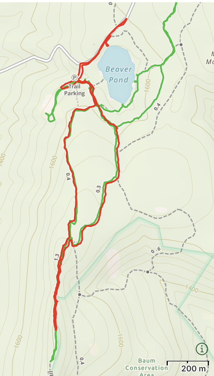 Hike stats: Distance: 3.94km Time: 1h12m Map: see red route below. (The green route refers to my prior visit)
