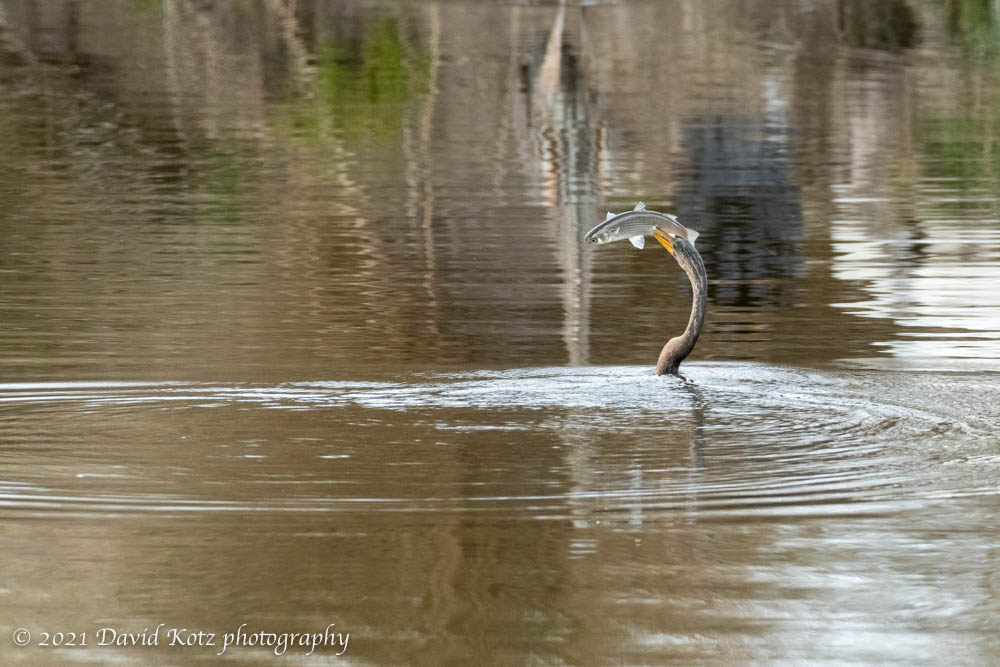 The anhinga was an expert fisherman, swimming underwater for long periods, then surfacing with a fish skewered on its beak.