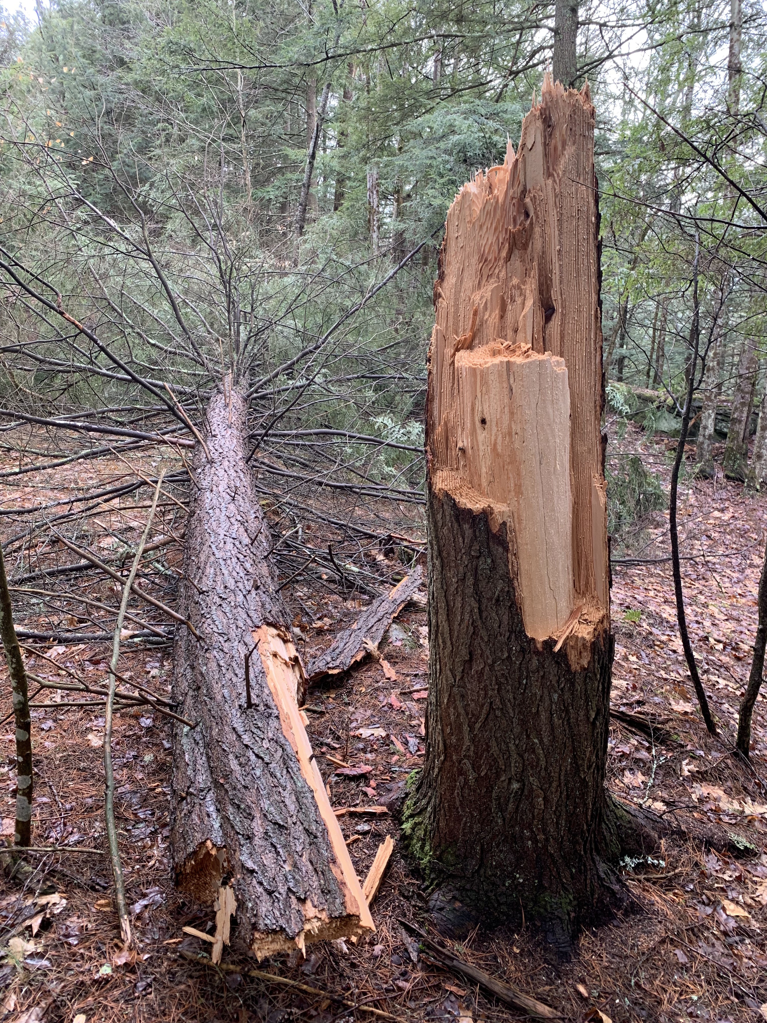 So, photographically, all I have to share this week is another “new” thing along my path. It was very windy last week and this hemlock snapped off at the base. When a tree like this falls in the woods; do you think the deer hear it? 😉