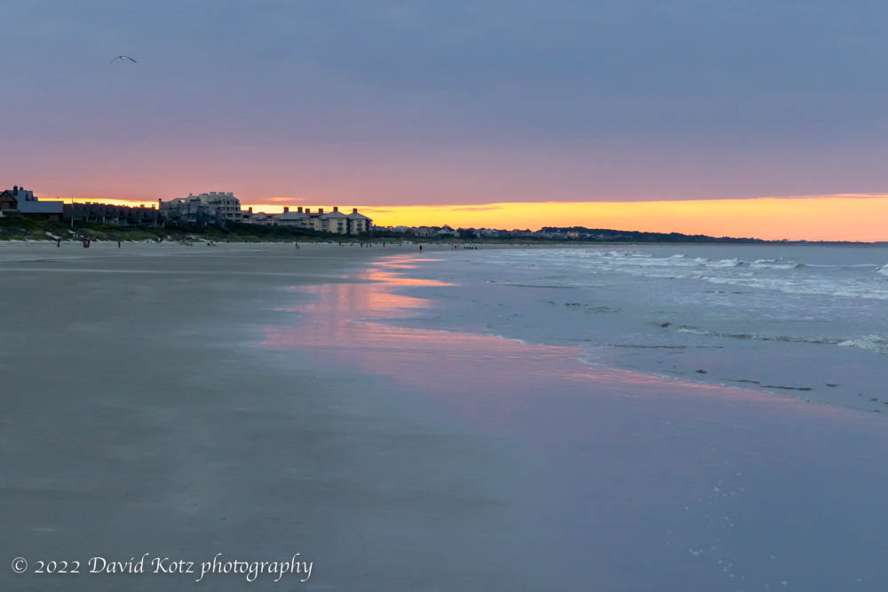 The Kiawah beach is aligned roughly northeast-southwest, and this time of year the sun rises from behind the beach. At winter solstice, it rises over the ocean (as in my photo of a Christmas sunrise).