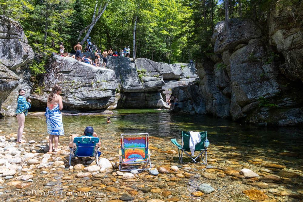 On the final day of my vacation we took a late-morning walk along the Ammonoosuc River, upstream from the Mount Washington Hotel. This is a beautiful mountain stream formed upslope in the Ammonoosuc Ravine on the slopes of Mount Washington. Along this section, it passes through several narrow cracks in the granite, forming cascades, waterfalls, and deep pools of cold, clear water. Beautiful, yes … but also a great playground on a hot summer’s day. Check out the gallery.