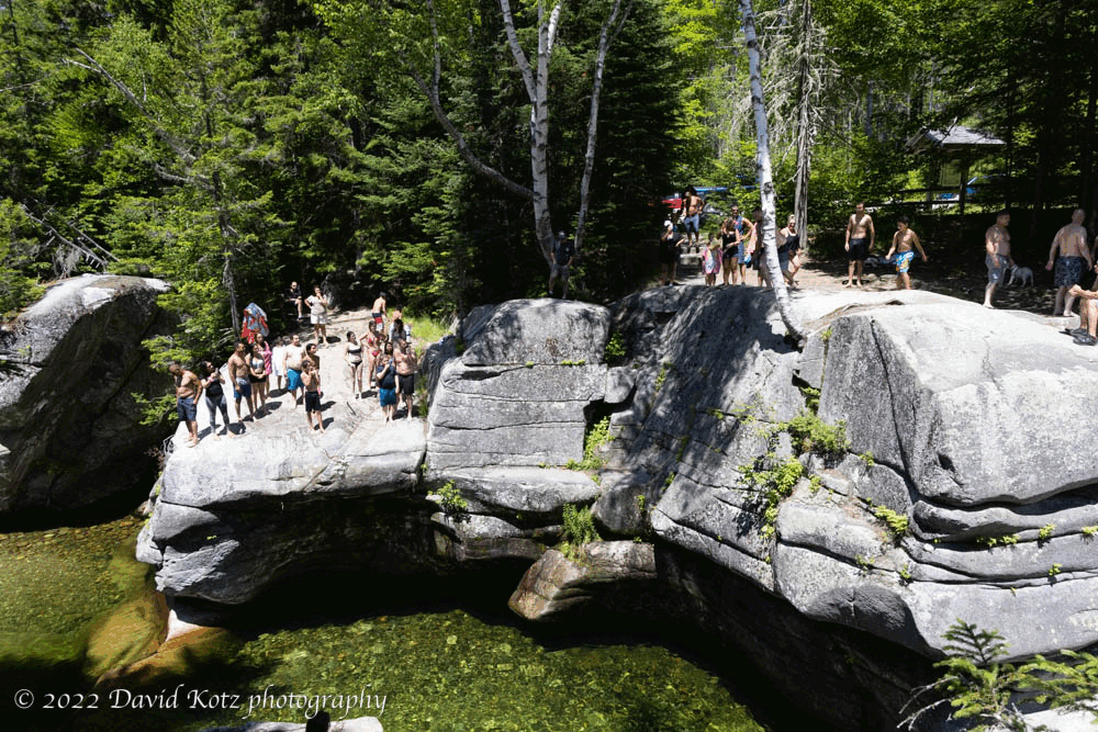 People swimming at the Upper Falls of the Ammonoosuc River, White Mountains.