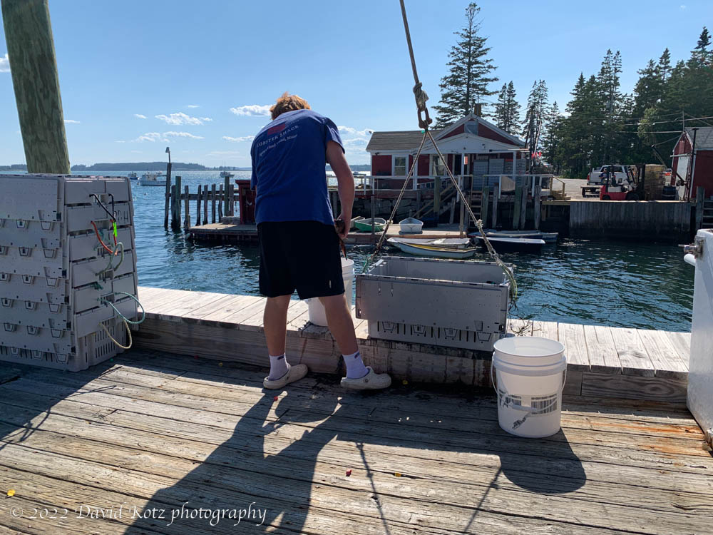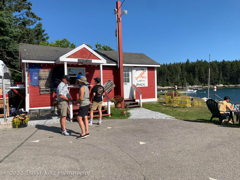 After a swim and a bit of photography, it was mid-afternoon and I’d run out of things to do. The lady at the front desk recommended McLoon’s Lobster Shack, a few miles away on the tip Spruce Head Island. I drove there, past a mix of farmland and vacation homes and across the causeway, arriving in late afternoon. Set on the shore of a harbor, steps away from the docks where lobster boats offload their days’ catch, it lived up to its reputation. I stepped up to the window of the small shack, placed my order, and settled in to a chair near the water. The weather was perfect and the place was busy, with happy families seated at the many picnic tables.