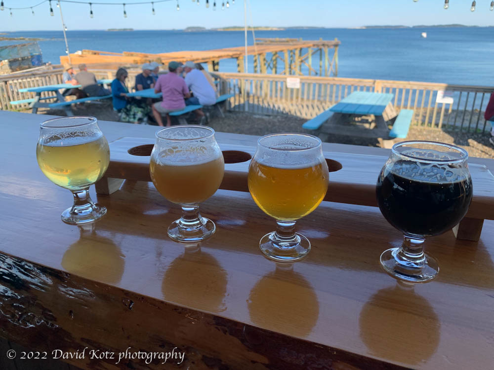 I tried a flight of Lager, two Ales, and a Stout – enjoying the latter enough for another pint and a “howler” to take home. (Ahem, this is why I walked, rather than driving.) I asked the bartender about the rules for walking on the beach, as all of the oceanfront here is private land. He noted that, in Maine, all the land below the high-tide line is open to the public. The tide was low and going out, so I stepped down to the beach and rock-hopped my way back to the campground, just around a point of land.