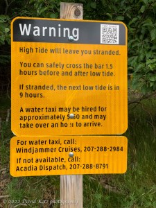 At the end of the sandbar is a sign warning that “High tide will leave you stranded” – the sandbar is passable only 90 minutes either side of low tide.