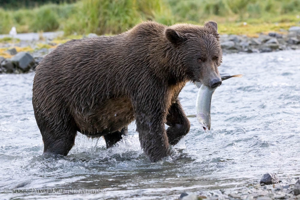 Brown bear, just after catching a salmon – Geographic Harbor, Katmai National Park.