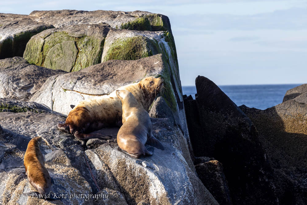 We stopped for a while near a tiny rocky islet to watch a family of sea lions, who were rather sleepy but who looked up to see what was going on nearby.